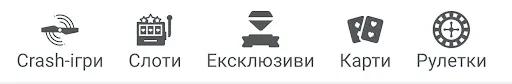| 🎰Слоти | Ігрові автомати, у яких гравець повинен потягнути важіль автомата, щоб крутити. Якщо гравець потрапляє на три схожі символи, він виграє джекпот. |