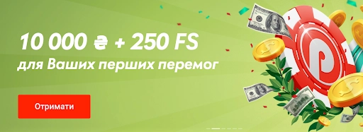 | 🥇 Вітальний бонус | 250 фріспінів, 120% на перший депозит |